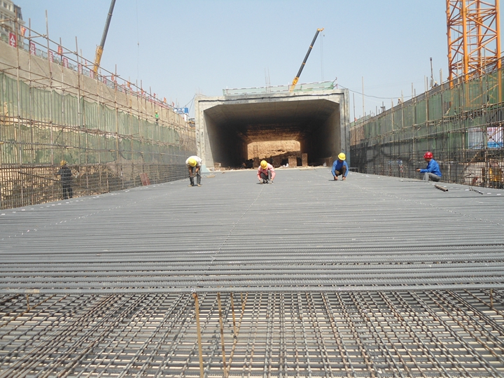道路工程起于文莊路,地塹部分左線ZK0+725-ZK0+886.65,全長(zhǎng)161.65m,右線YK0+725-YK0+887.65,全長(zhǎng)162.65m。地上部分北側(cè)BK1+375-BK2+025,全長(zhǎng)650m,南側(cè)NK0+425-NK1+075,全長(zhǎng)650m。道路橫斷面為:4米人行道+3.5非機(jī)動(dòng)車道+3.0綠化帶+14.75機(jī)動(dòng)車道+13.75機(jī)動(dòng)車道+13.75機(jī)動(dòng)車道+14.75機(jī)動(dòng)車道+3.0綠化帶+3.5非機(jī)動(dòng)車道+4人行道。