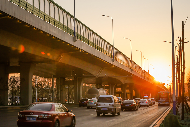 工業(yè)北路快速路西起全福立交橋,東至郭店立交,長13.6公里,標準段寬25.5米,雙向6車道。沿線共設置8對匝道,其中7對實現(xiàn)高架橋梁與地面道路的連接,在郭店立交設置一對專用匝道實現(xiàn)高快轉(zhuǎn)換。